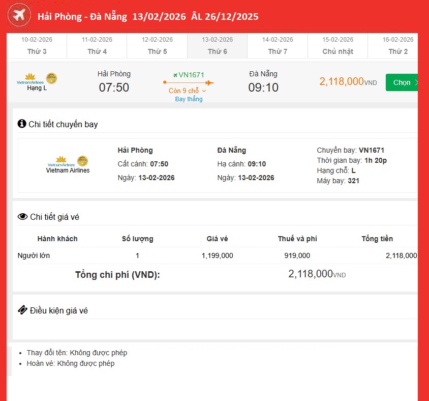 Hà Nội - Quy Nhơn 09/02/2026 ÂL 22/12/2025
