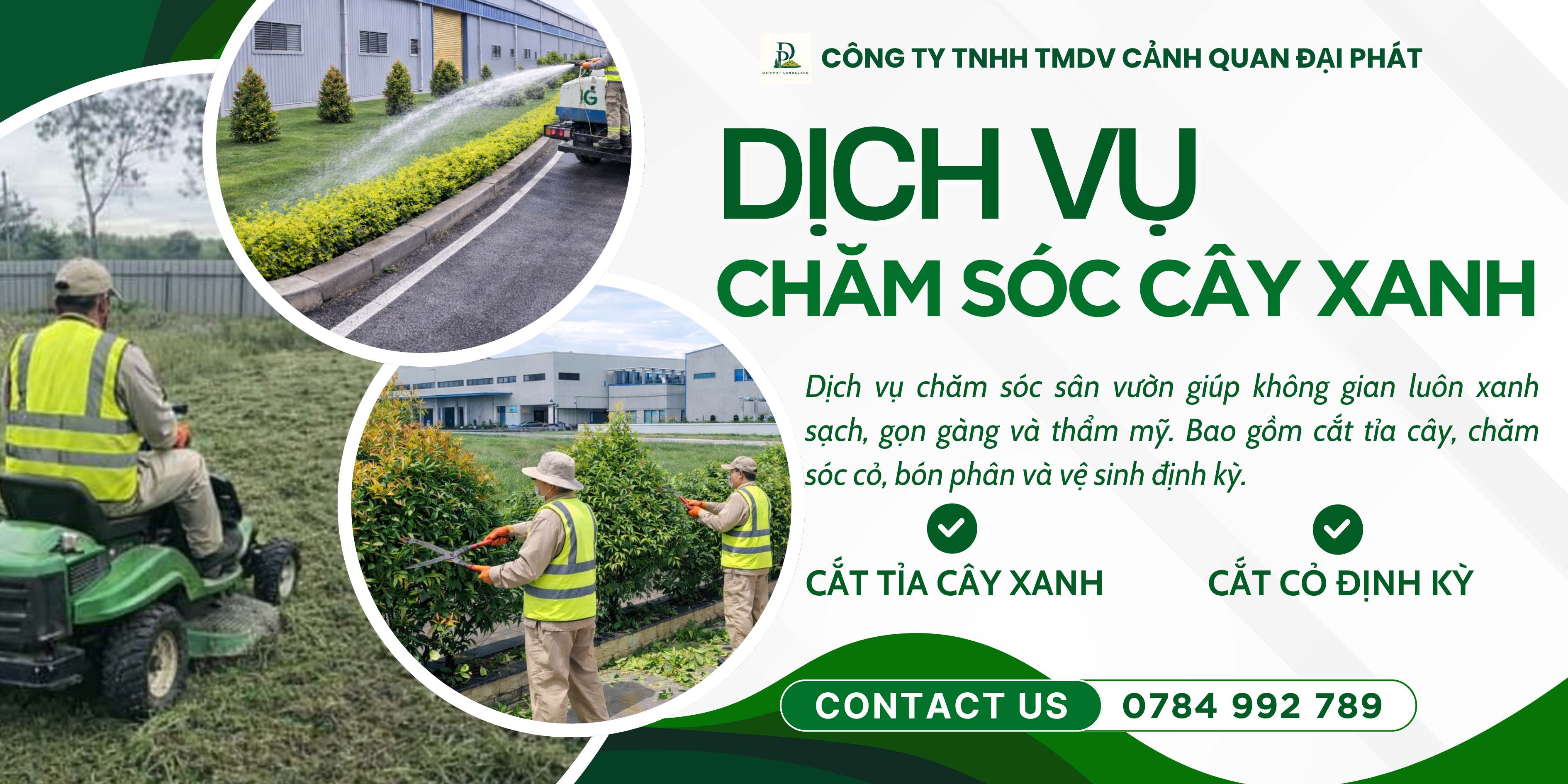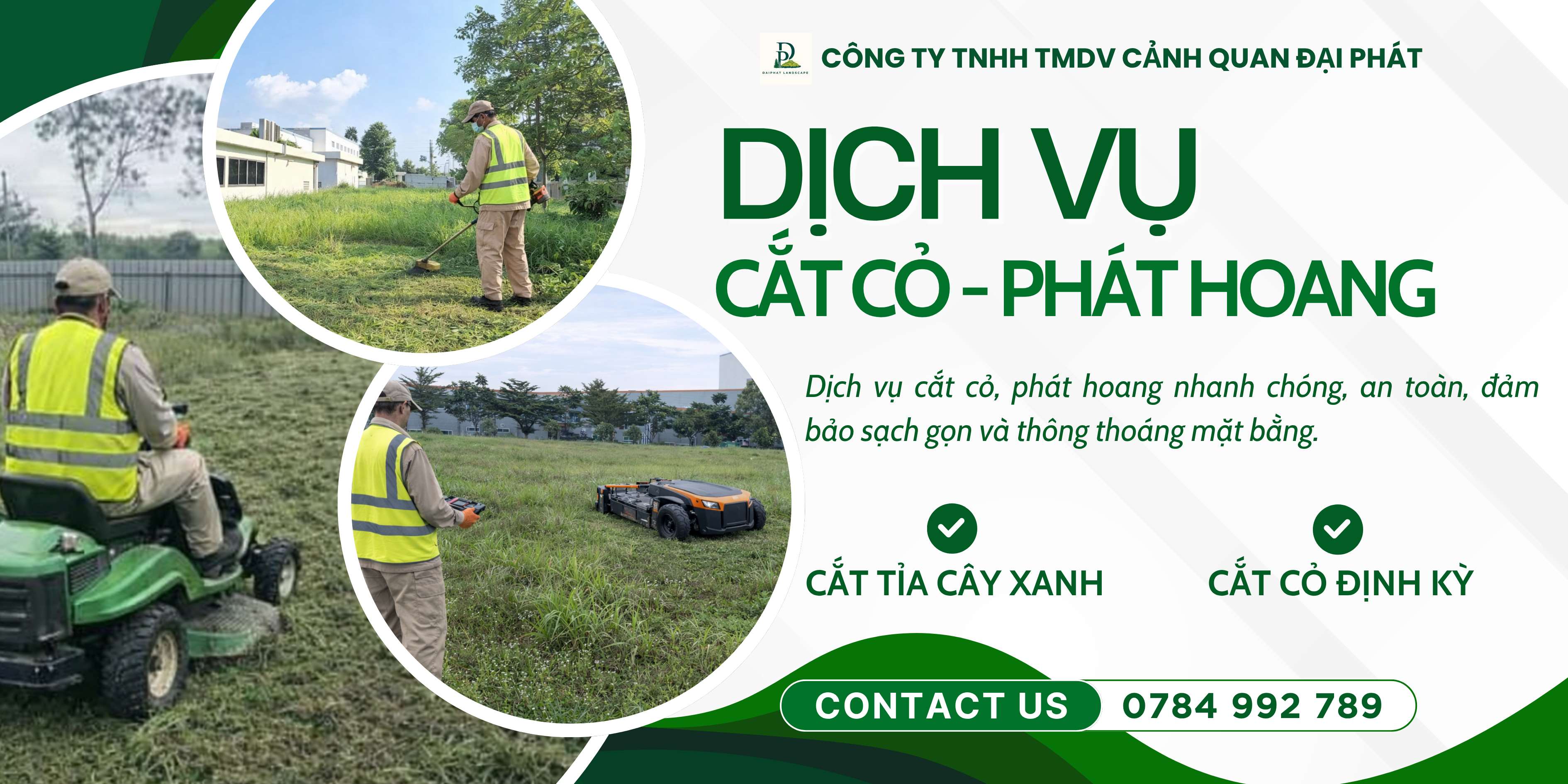 Hiểu được điều đó, Công ty TNHH TMDV Cảnh Quan Đại Phát cung cấp dịch vụ cắt cỏ – cưa cây – vệ sinh cảnh quan chuyên nghiệp, giúp doanh nghiệp duy trì môi trường làm việc xanh – sạch – an toàn.