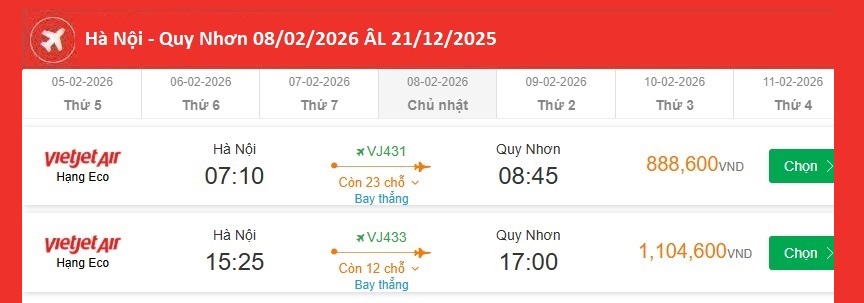 Hà Nội - Quy Nhơn 08/02/2026 ÂL 21/12/2025