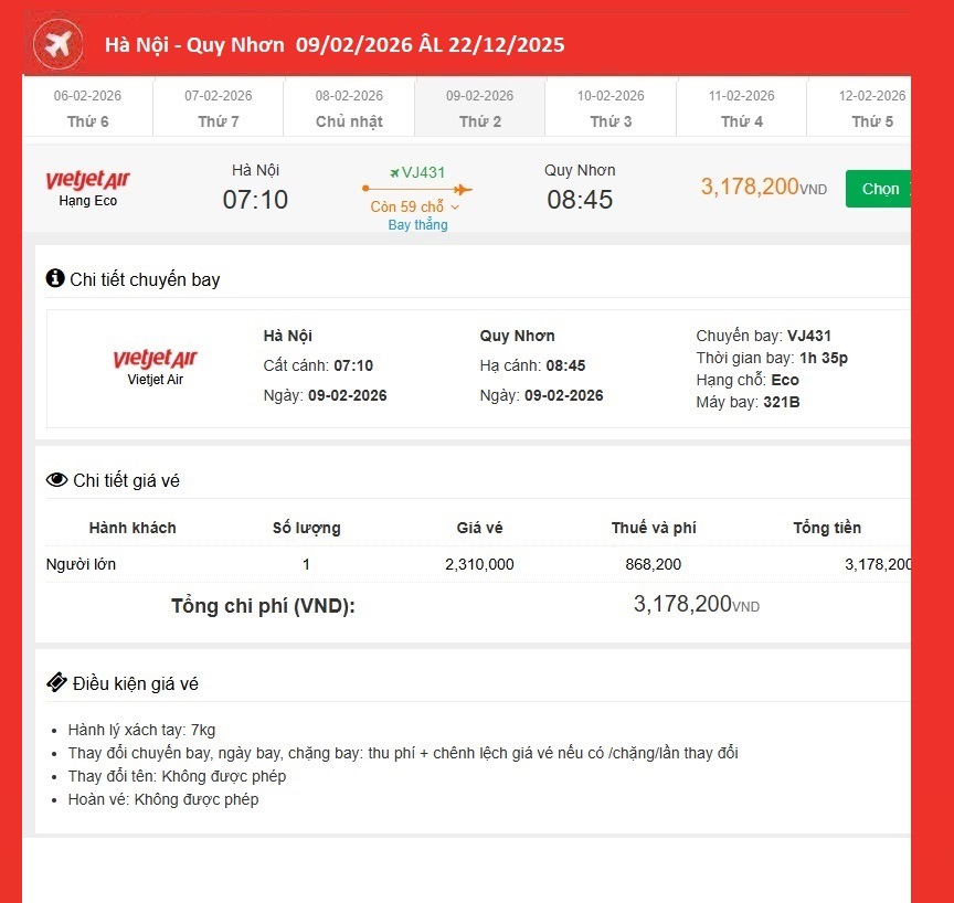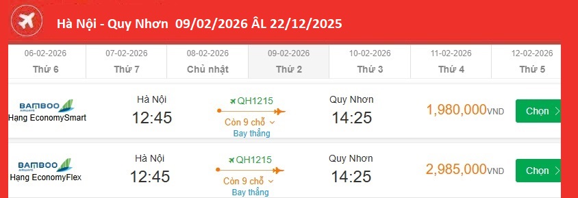 Hà Nội - Quy Nhơn 09/02/2026 ÂL 22/12/2025