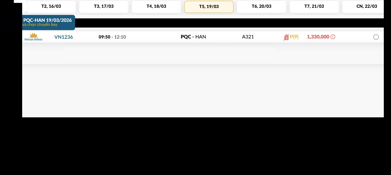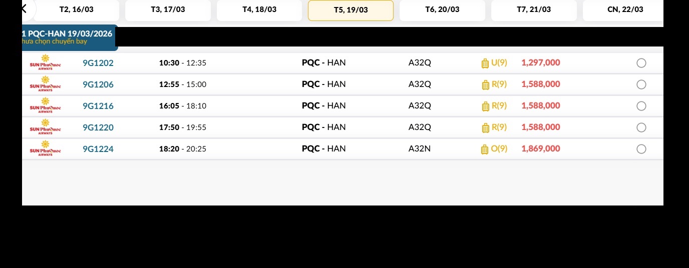 Phú Quốc (PQC) - Hà Nội (HAN) Thứ năm 19/03/2026
