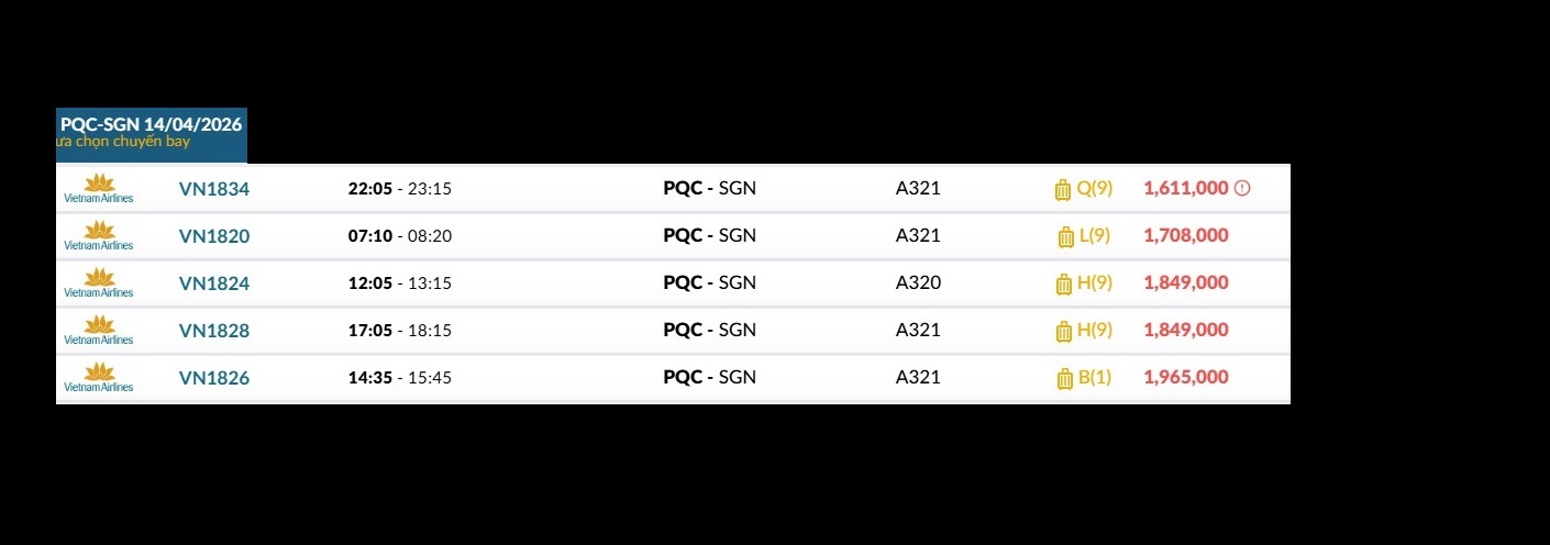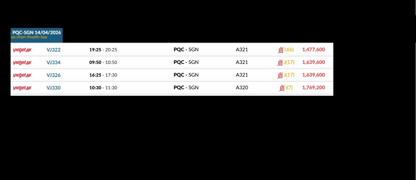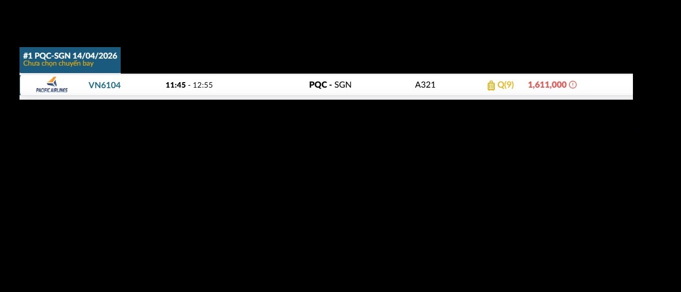 Phú Quốc (PQC) - TP. Hồ Chí Minh (SGN) Thứ ba 14/04/2026