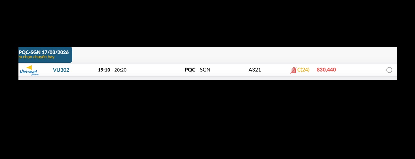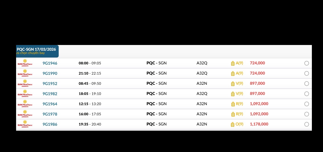 Phú Quốc (PQC) - TP. Hồ Chí Minh (SGN) Thứ ba 17/03/2026