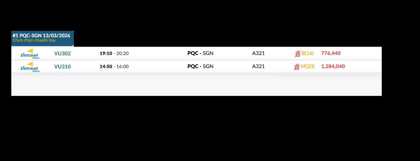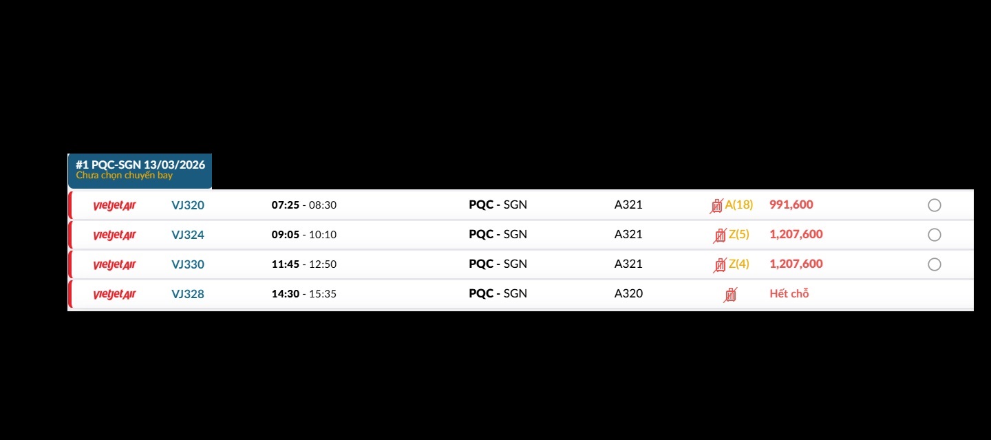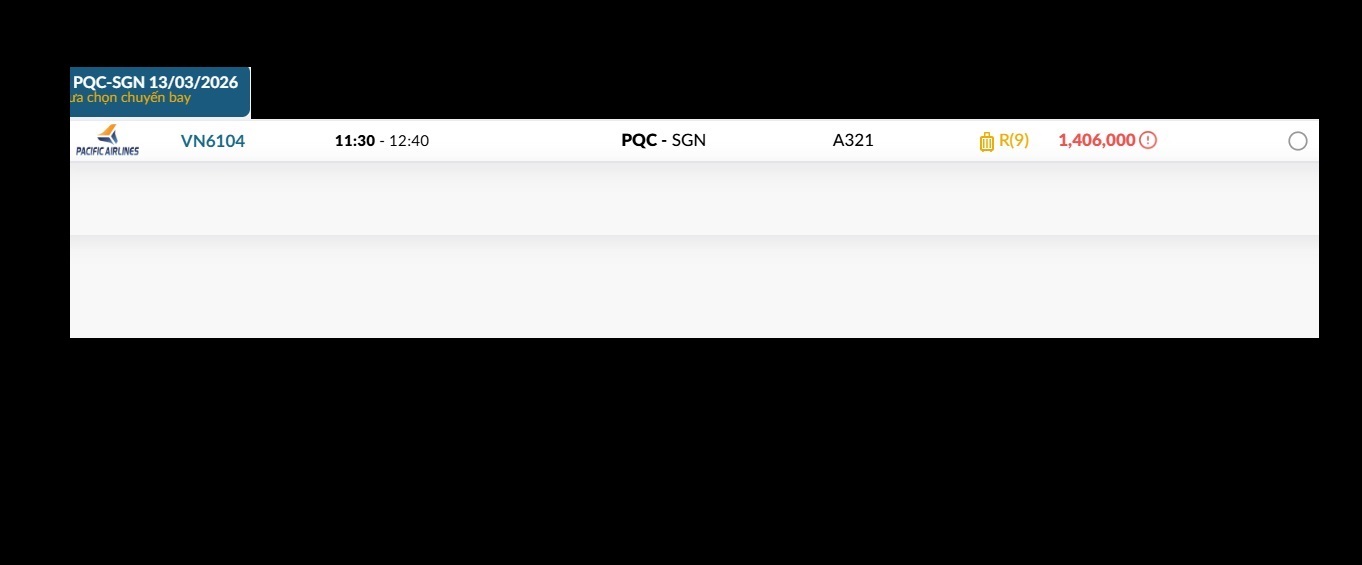 Phú Quốc (PQC) - TP. Hồ Chí Minh (SGN) Thứ sáu 13/03/2026