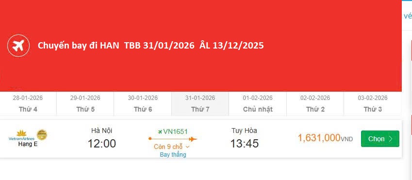 Hà Nội - Tuy Hòa 31/01/2026 ÂL 13/12/2025