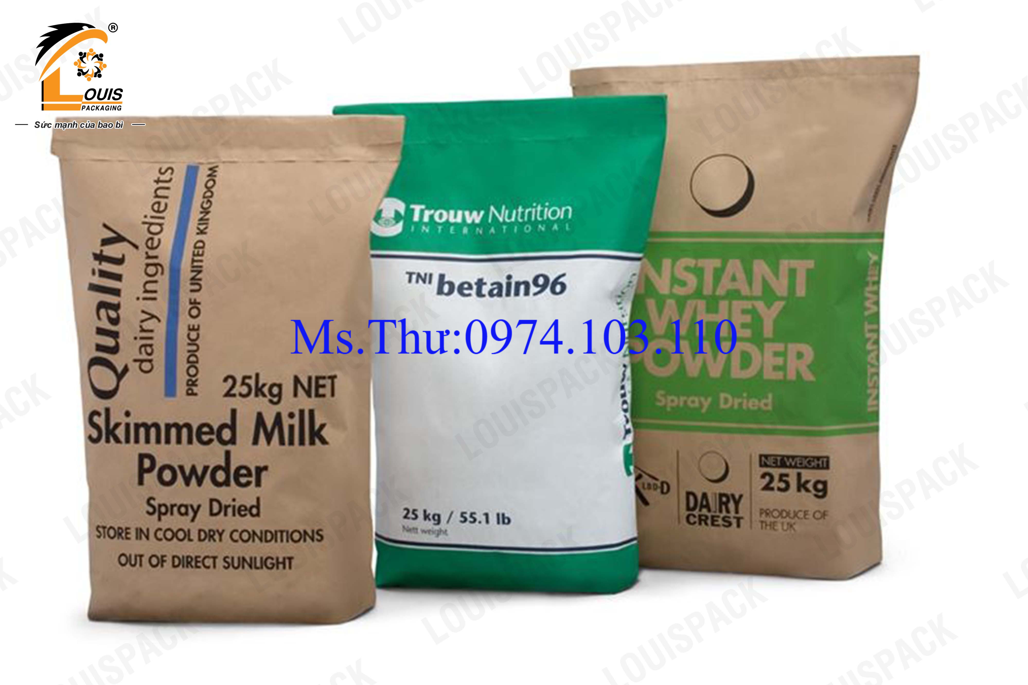 Bao giấy KP đựng hạt nhựa 25kg, Bao KP đựng phụ gia hoá chất
