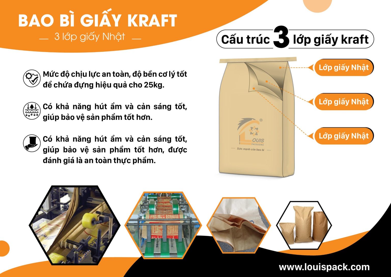 🔹 Bao 3 lớp giấy kraft là bao bì chứa đựng hàng hóa khối lượng lớn 1 cách an toàn, chịu tải đến 25kg.