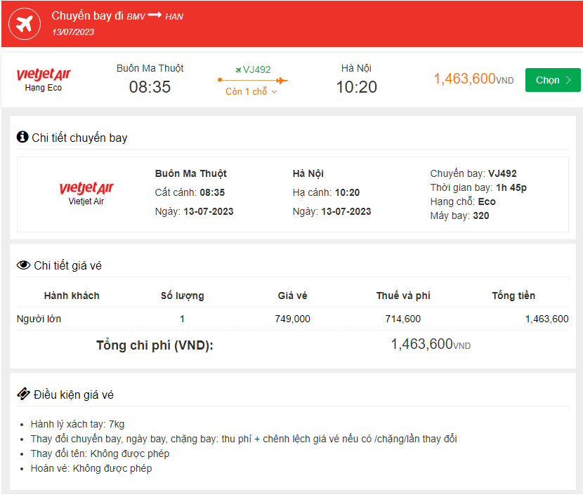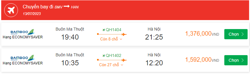 Buôn Ma Thuột Đến Hà Nôi 13/07/2023