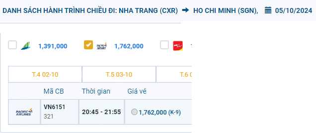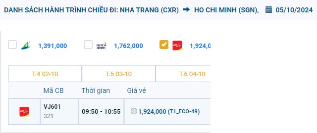 Cam Ranh (CXR) - Tân Sơn Nhất (SGN) 05/10/2024