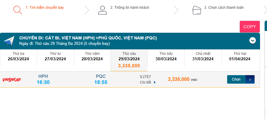 Cát Bi (HPH) - Phú Quốc (PQC) 29/03/2024