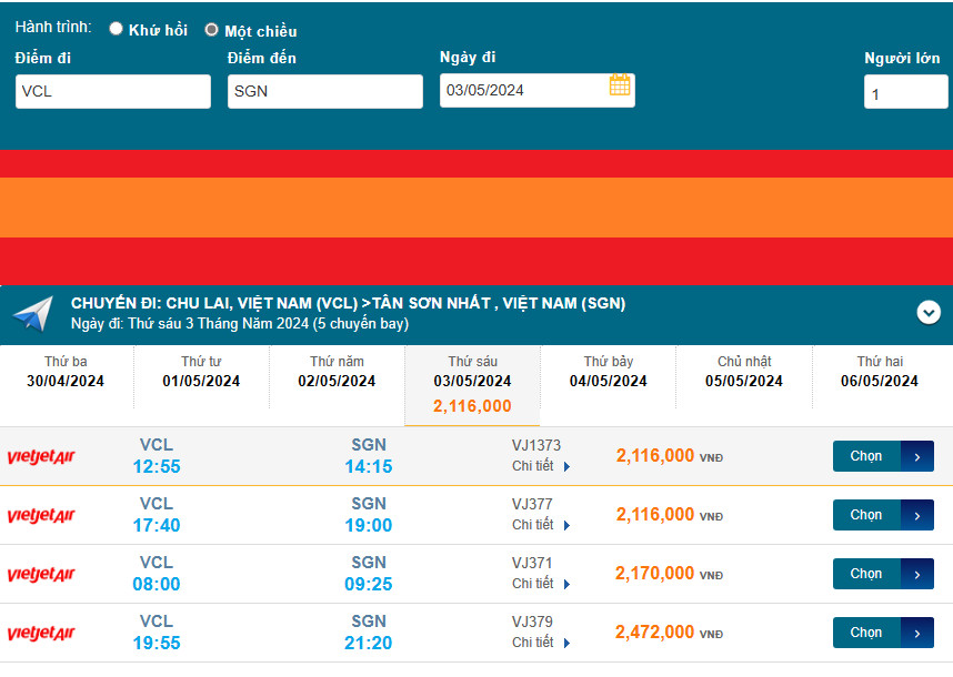 Chu Lai (VCL) - Tân Sơn Nhất (SGN) 03/05/2024