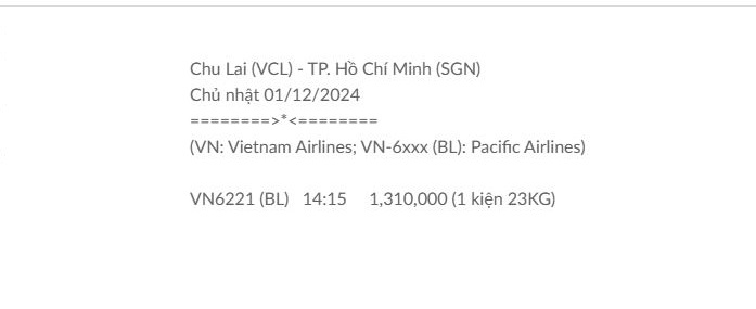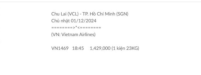 Chu Lai (VCL) - TP. Hồ Chí Minh (SGN) Chủ nhật 01/12/2024