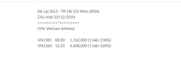 VN1383 -> 12:35 vé máy bay 4,408,000 (1 kiện 32KG)