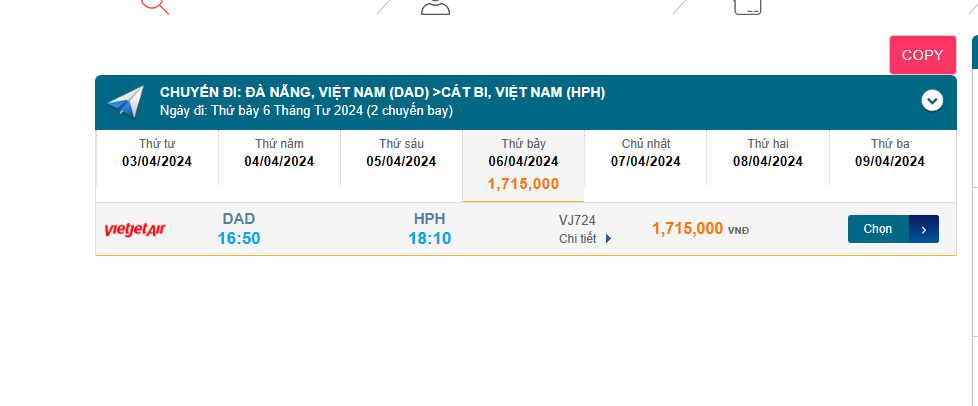 Đà Nẵng (DAD) - Cát Bi (HPH) 06/04/2024