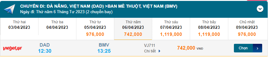 Đà Nẵng (DAD) Đến Ban Mê Thuột(BMV) 06/04/2023