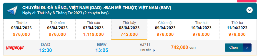 Đà Nẵng (DAD) Đến Ban Mê Thuột(BMV) 08/04/2023