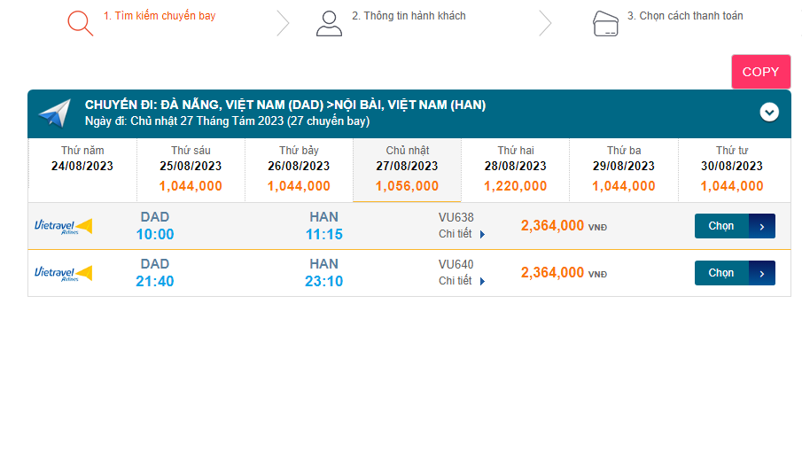 Đà Nẵng(DAD) - Nội Bài(HAN) 27/08/2023