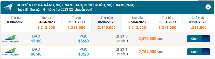 Đà Nẵng (DAD) Đến Phú Quốc (PQC) 06/04/2023