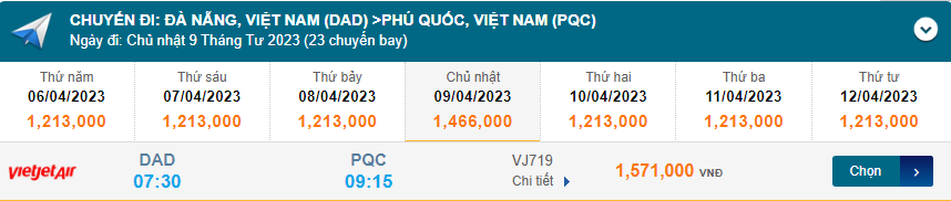 Đà Nẵng (DAD) Đến Phú Quốc (PQC) 09/04/2023