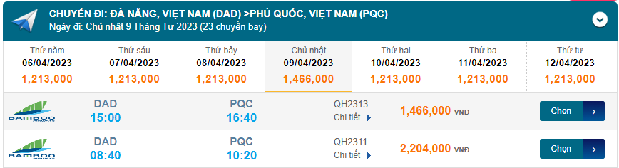 Đà Nẵng(DAD) - Phú Quốc(PQC) 09/04/2023