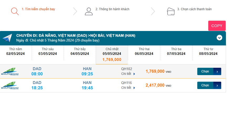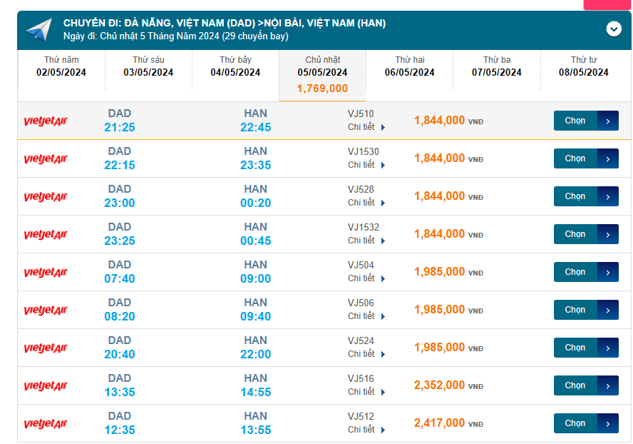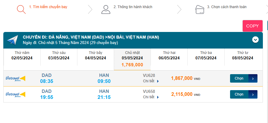 Đà Nẵng (DAD) - Nội Bài (HAN) 05/05/2024