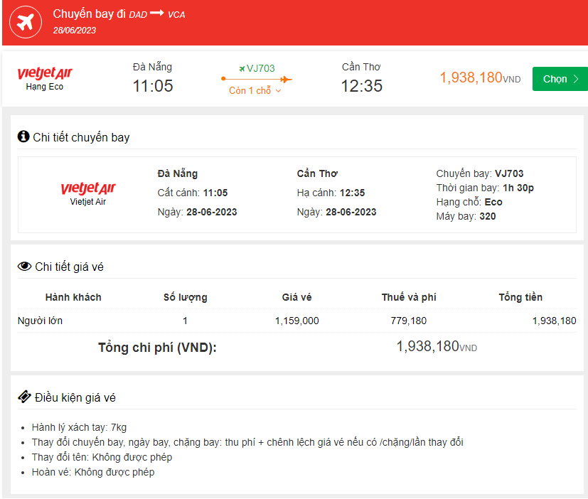 Đà Nẵng Đến Cần Thơ 28/06/2023