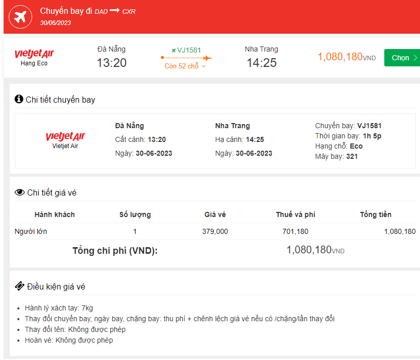 Đà Nẵng Đến Nha Trang 30/06/2023