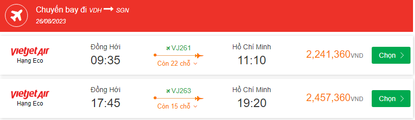 Đồng Hới Đến Hồ Chí Minh 26/07/2023