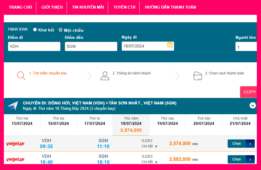 Đồng Hới (VDH) - Tân Sơn Nhất (SGN) 18/07/2024