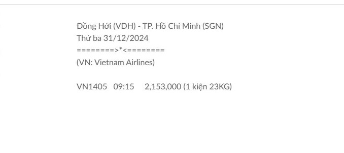 Đồng Hới (VDH) - TP. Hồ Chí Minh (SGN) Thứ ba 31/12/2024