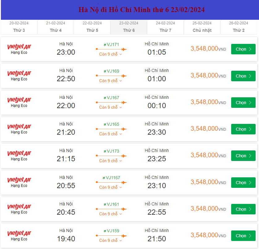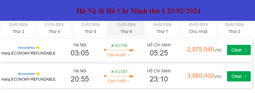 Hà Nộ đi Hồ Chí Minh thứ 6 23/02/2024