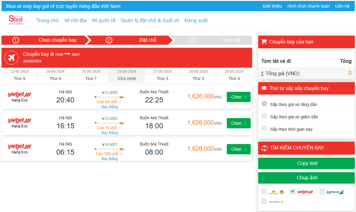 Hà Nội - Buôn Ma Thuột 26/05/2024
