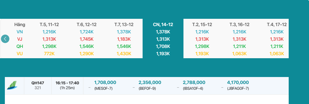 QH147 16:15-17:40 Vé Máy Bay 1,708,000