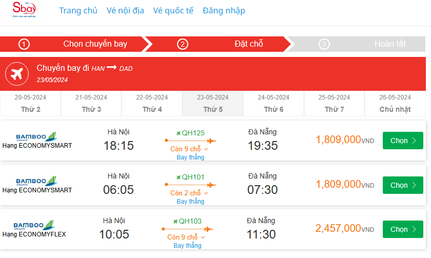 Hãng Bamboo Airways QH101 Bay thẳng Hạng ECONOMYSMART 06:05-07:30 giá vé máy bay 1,809,000