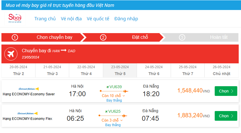 Hãng Vietnam Airlines VN181 Bay thẳng Hạng S 16:10-17:40 giá vé máy bay 2,410,000