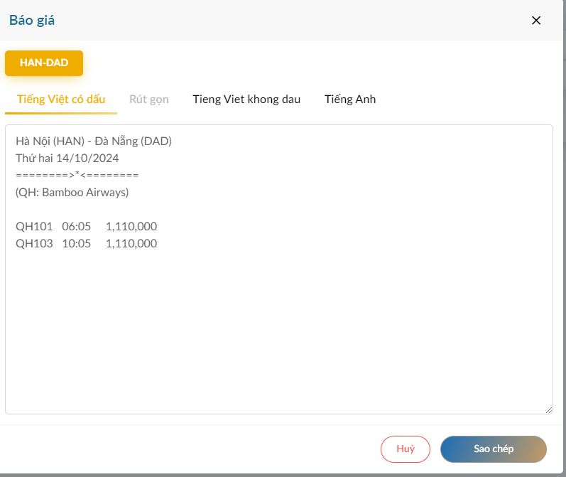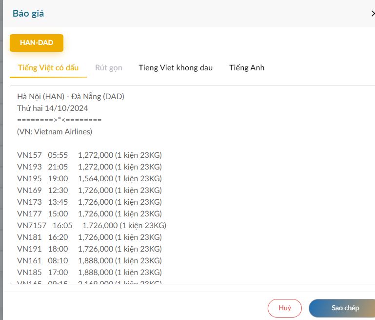 Hà Nội (HAN) - Đà Nẵng (DAD) Thứ hai 14/10/2024