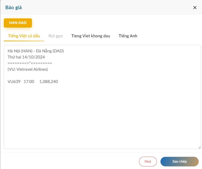 Hà Nội (HAN) - Đà Nẵng (DAD)Thứ hai 14/10/2024