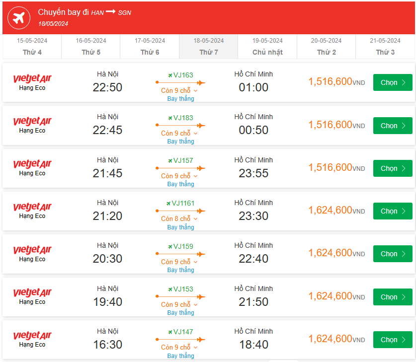 Hà Nội - Hồ Chí Minh 18/05/2024