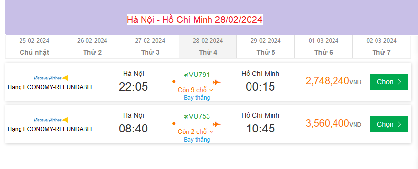 VU753 Bay thẳng Hạng ECONOMY-REFUNDABLE 08:40-10:45 giá vé 3,560,400