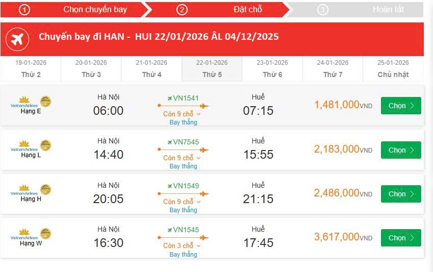 Hà Nội - Huế 22/01/2026