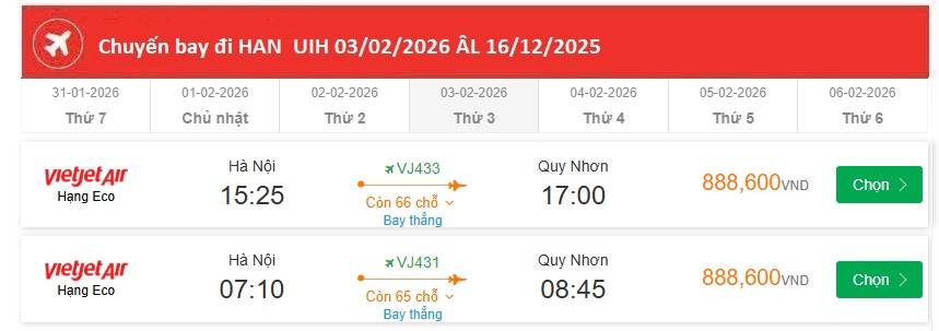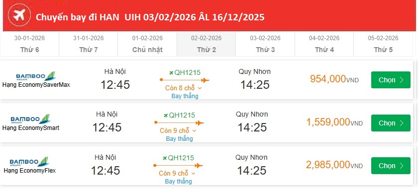 Hà Nội - Quy Nhơn 03/02/2026 ÂL 16/12/2025