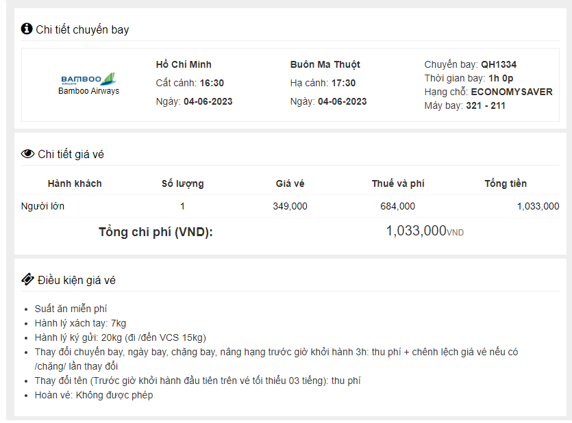 Hồ Chí Minh Đến Buôn Ma Thuột 04/06/2023