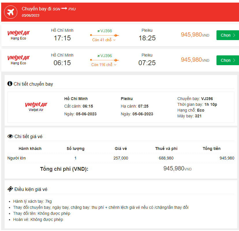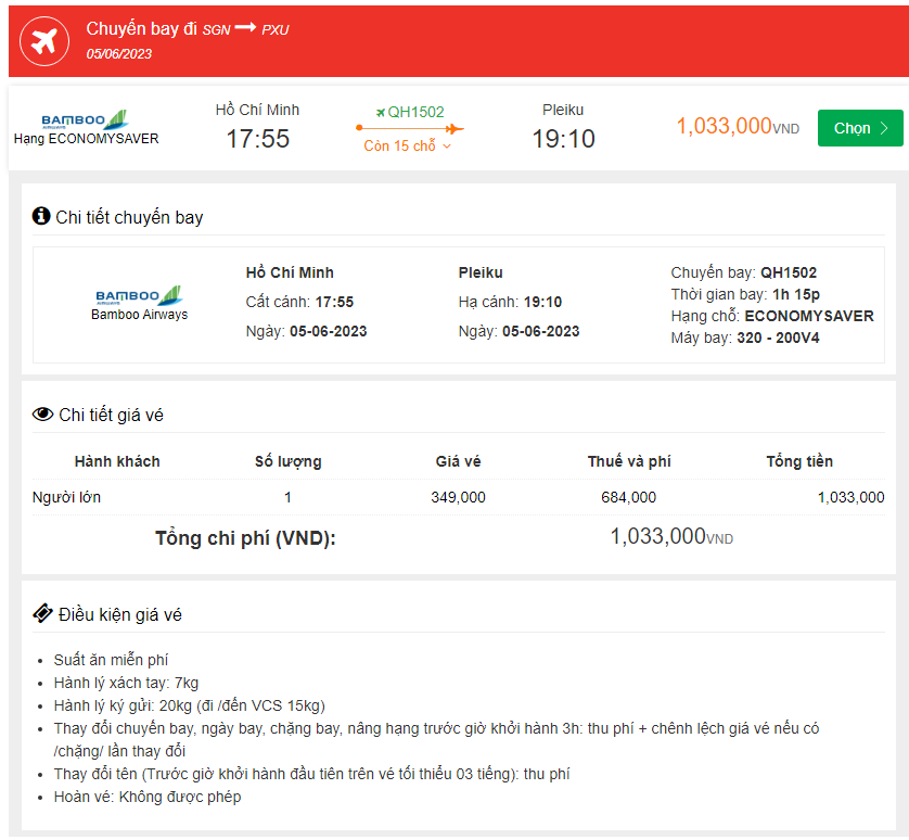 Hồ Chí Minh Đến Pleiku 05/06/2023