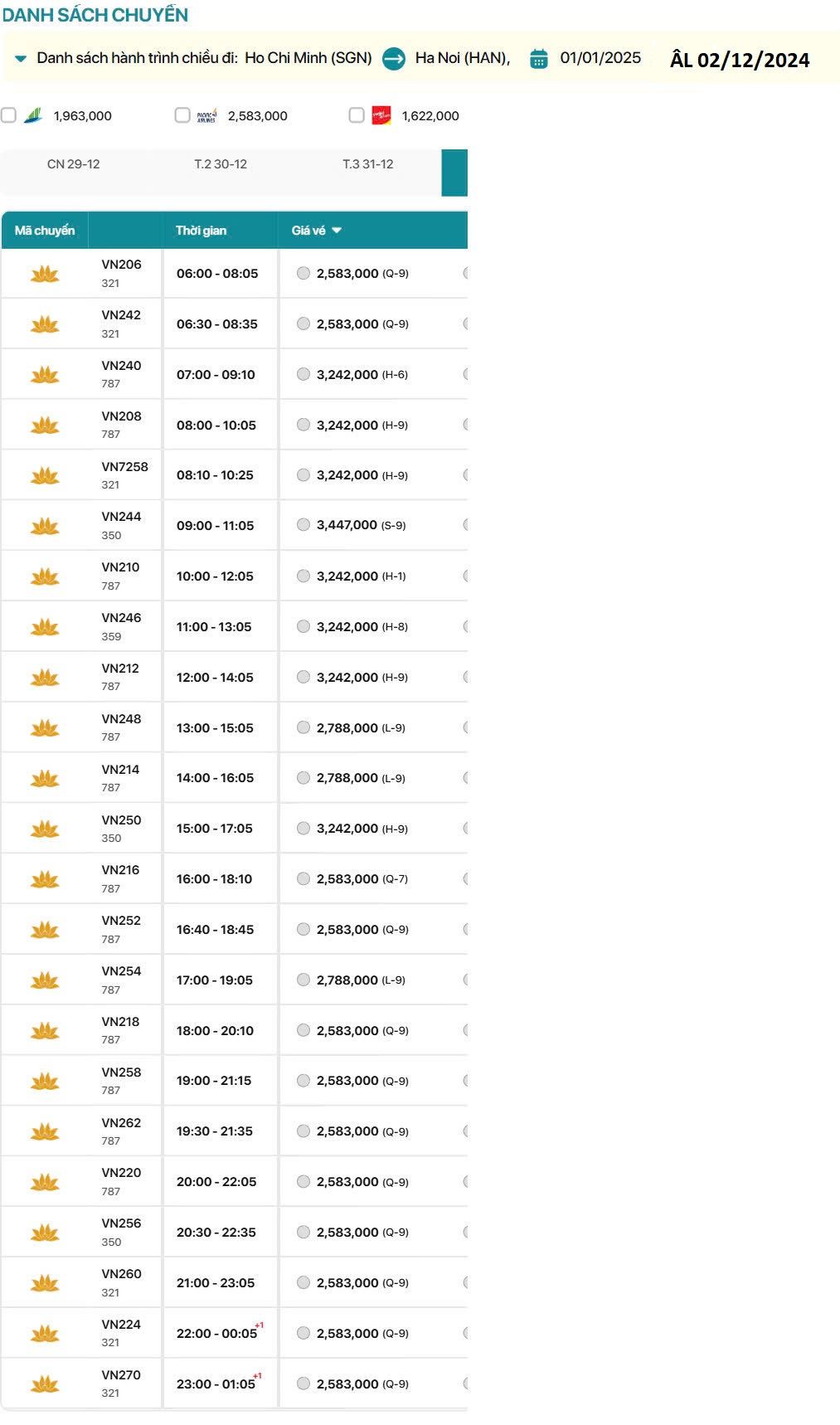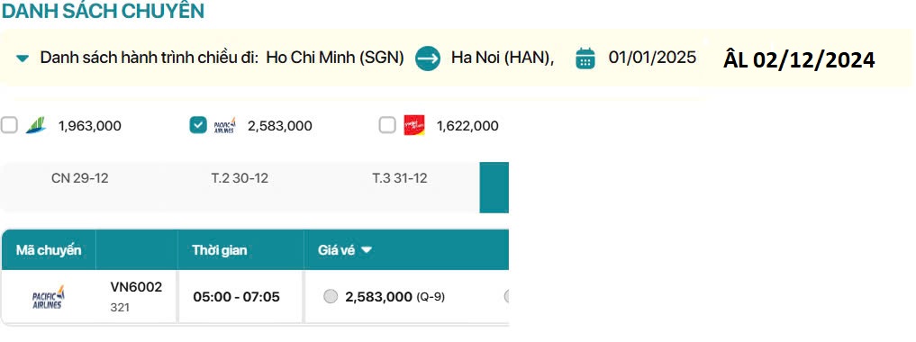 Hồ Chí Minh - Hà Nội 01/01/2025 ÂL 02/12/2024