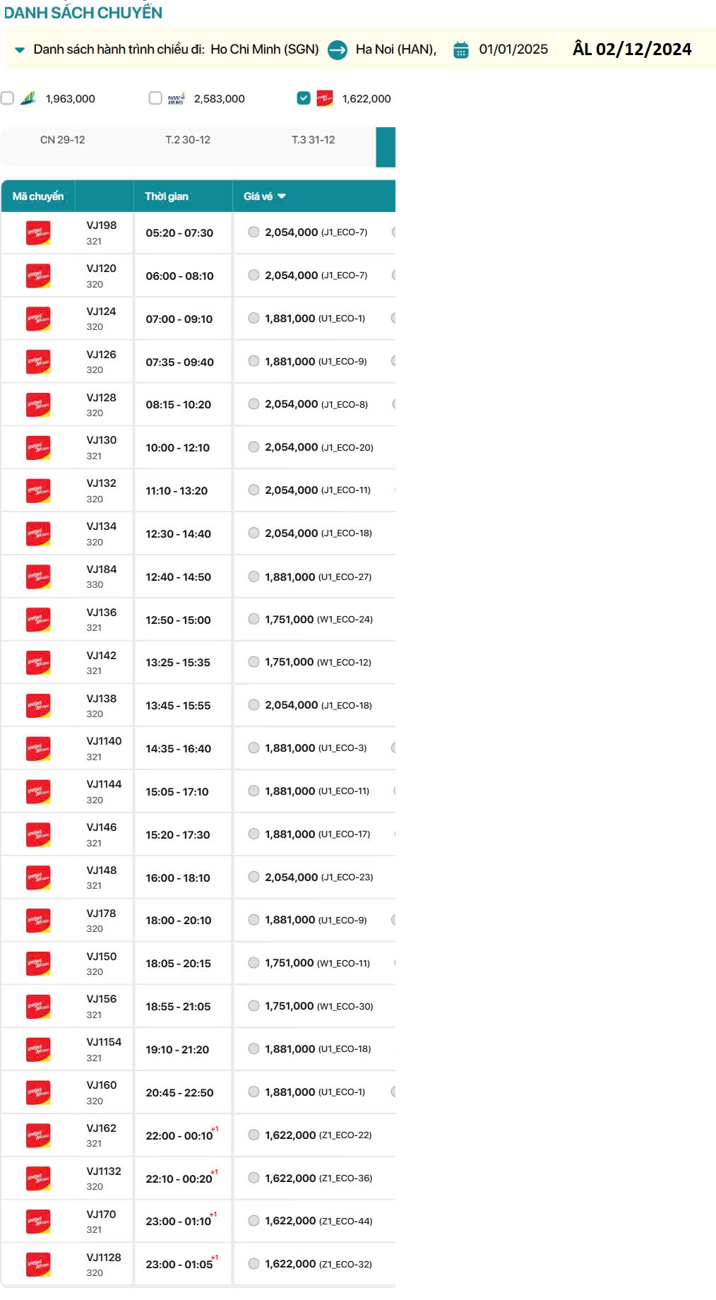 VJ1132 Bay thẳng Hạng Eco 22:10-00:20 vé máy bay 1,626,000