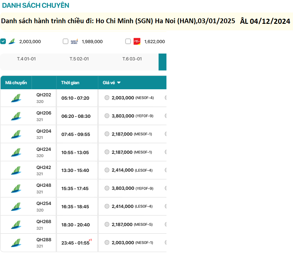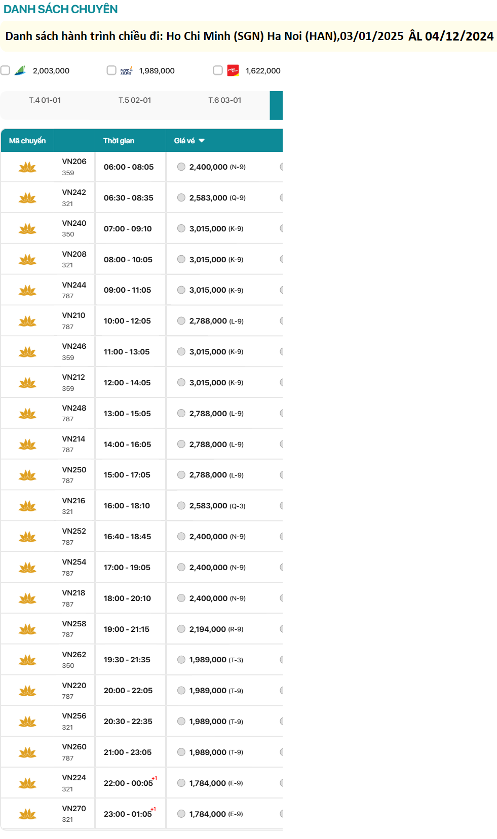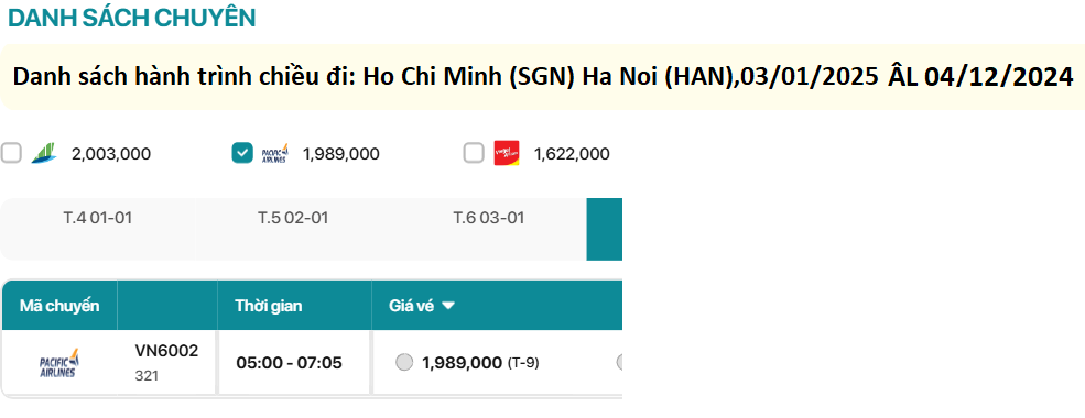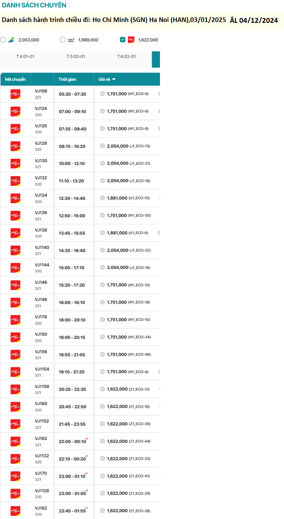 Hồ Chí Minh - Hà Nội 03/01/2025 ÂL 04/12/2024