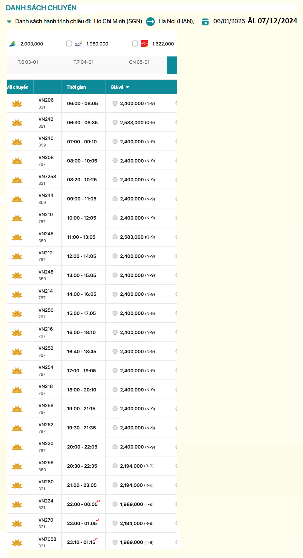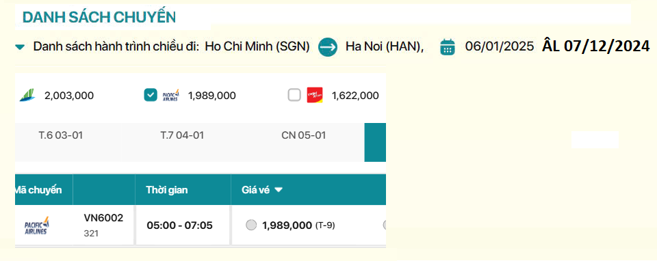 Hồ Chí Minh - Hà Nội 06/01/2025 ÂL 07/12/2024