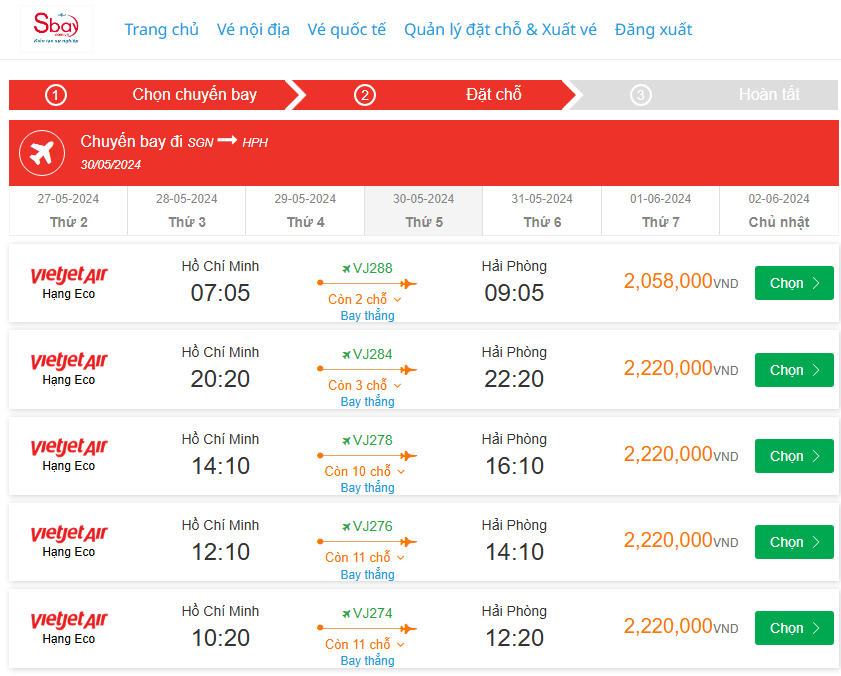 Hồ Chí Minh - Hải Phòng 30/05/2024