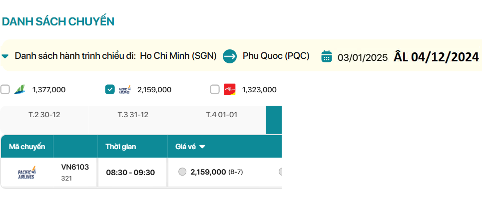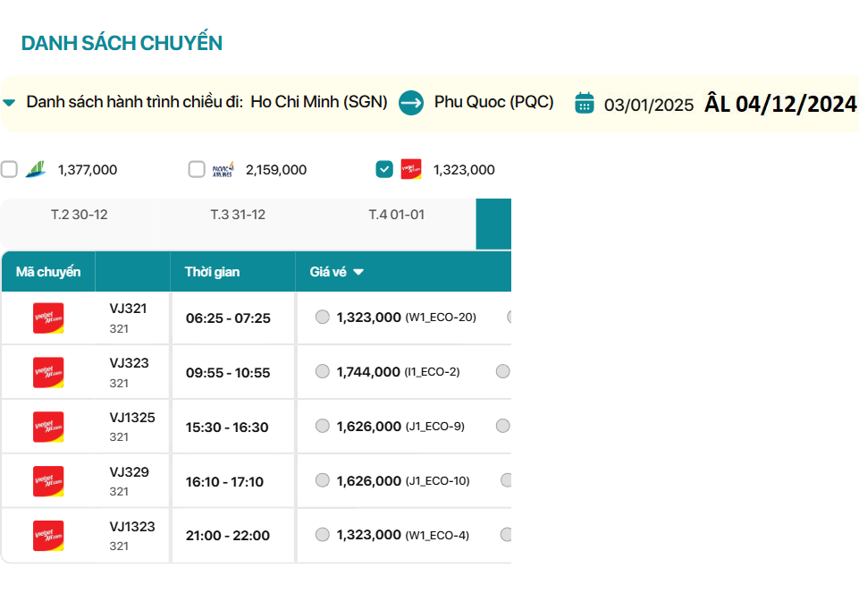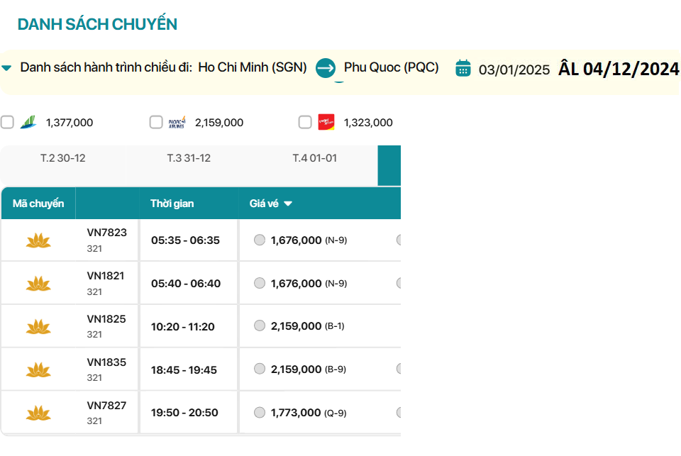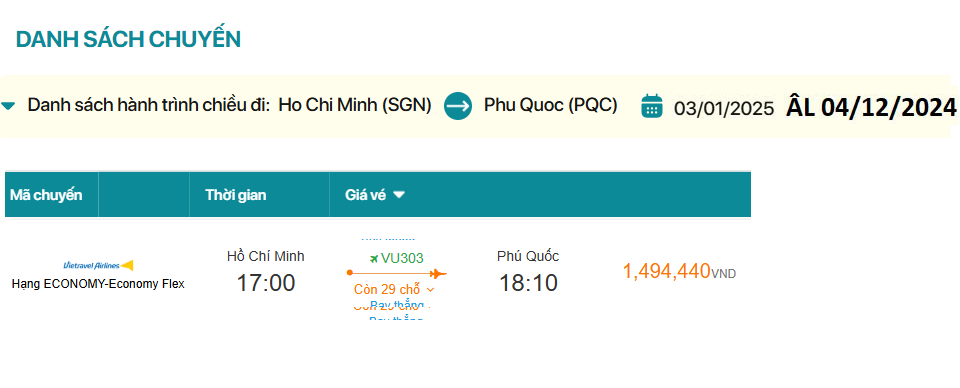 Hồ Chí Minh - Phú Quốc 03/01/2025 ÂL 04/12/2024 Số 1