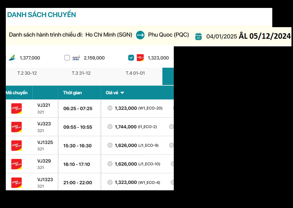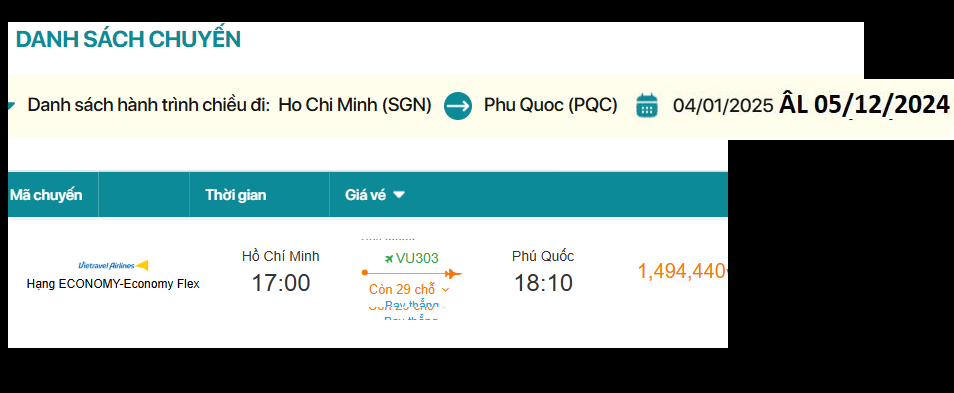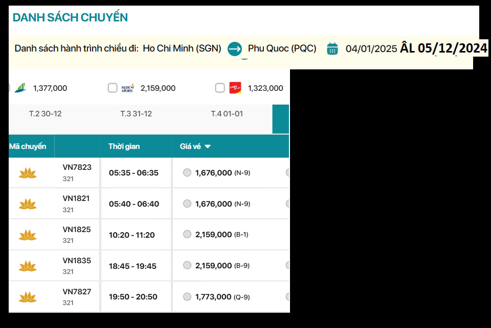 Hồ Chí Minh - Phú Quốc 04/01/2025 ÂL 05/12/2024 Số 2